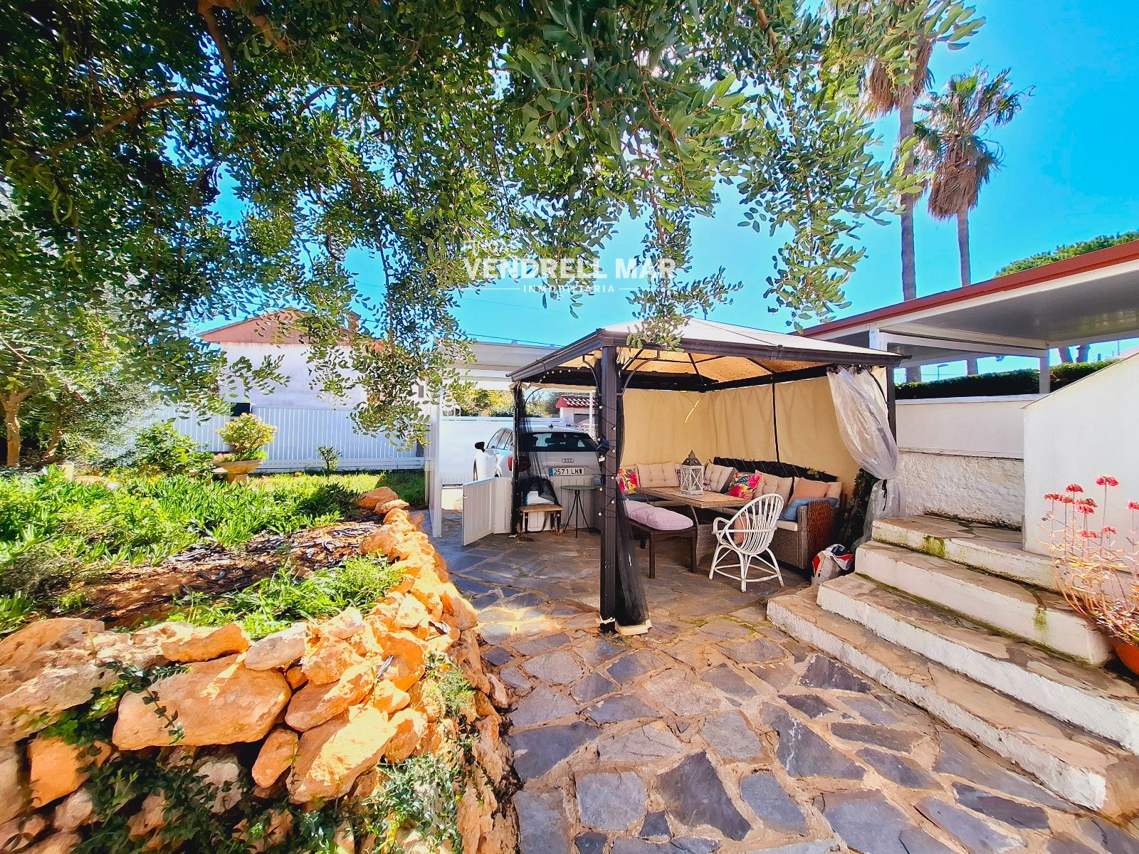 Discover this magnificent corner house in Cunit, located in a quiet residential area, ideal for year-round family enjoyment or as a second home by the sea. The property sits on a large 460 m² plot, offering privacy and excellent outdoor spaces. It features a beautiful garden area, an aluminum carport, a built-in barbecue, a private swimming pool with ideal orientation and sunshine, a storage room, an outdoor bathroom, and a cozy wine cellar. A perfect setting for gatherings, celebrations, or simply relaxing. Inside, you'll find a fully renovated home, ready to move into. The main floor boasts a beautiful, bright living room with an open-plan, fully equipped kitchen and direct access to the garden, creating a modern, functional, and very welcoming space. The first floor comprises three bedrooms, two of them double and one en suite with a toilet. There is also a full bathroom with a shower. On the second floor, you'll find a spacious and bright attic with a full bathroom with a bathtub and access to a fantastic solarium. This terrace connects directly to the garden via an elegant spiral staircase, adding a special and practical touch to the home. The house is fully equipped: Natural gas hot water and heating; white lacquered wood interior doors; aluminum exterior doors with double glazing; security bars; and a completely updated electrical system. It is sold furnished and ready to move into. A unique opportunity not to be missed. Request more information and schedule your visit to discover everything this home has to offer.