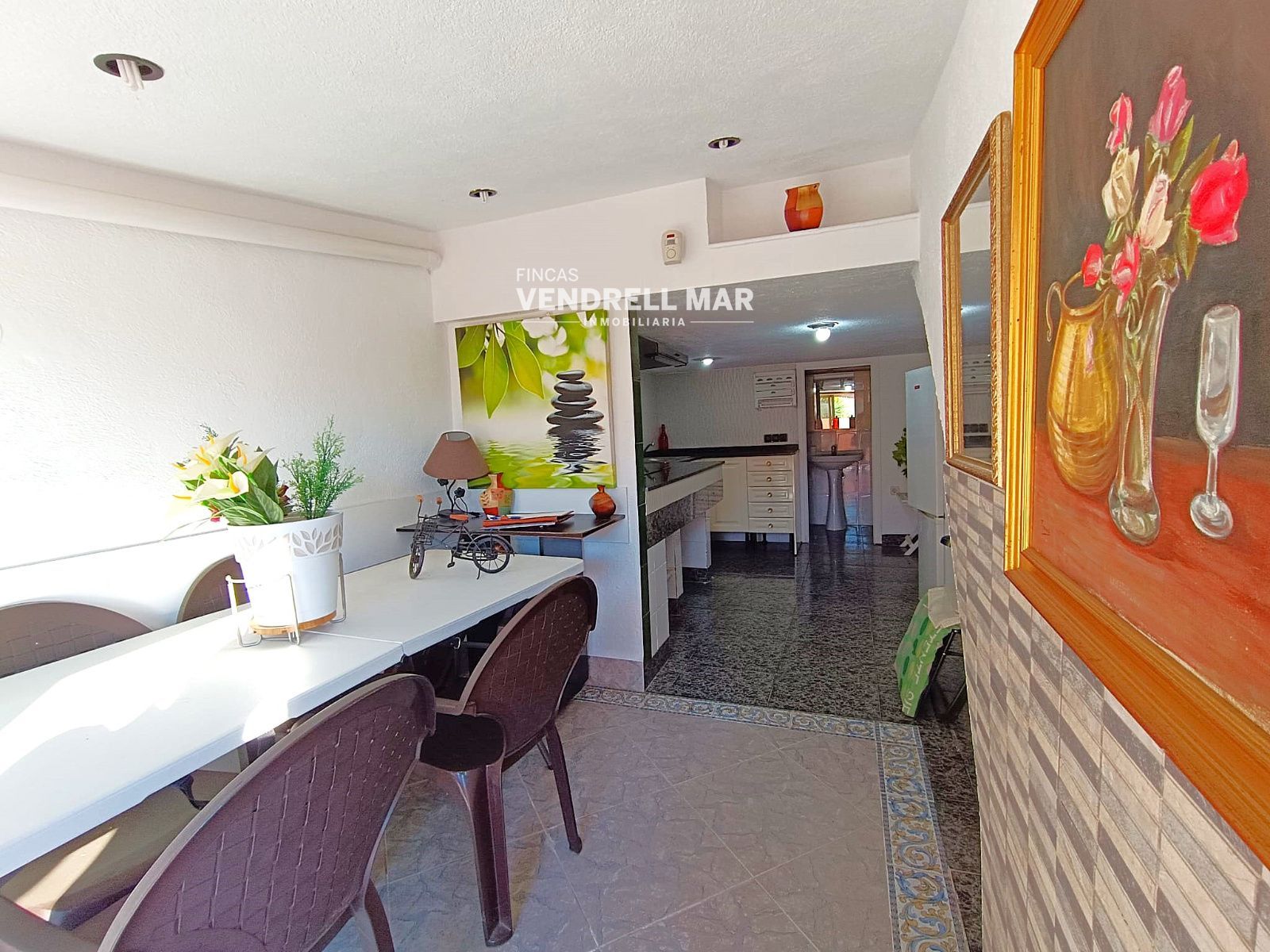 Al entrar, una encantadora terraza de 15 m² se convierte en el escenario perfecto para desayunos al sol, cenas de verano o momentos de relax. Desde aquí accedemos a un amplio salón-comedor, un espacio pensado para compartir, que conecta con una cocina independiente con salida a una terraza posterior privada, un rincón especial con ducha exterior, zona de lavado y trastero, ideal tras un día de playa.