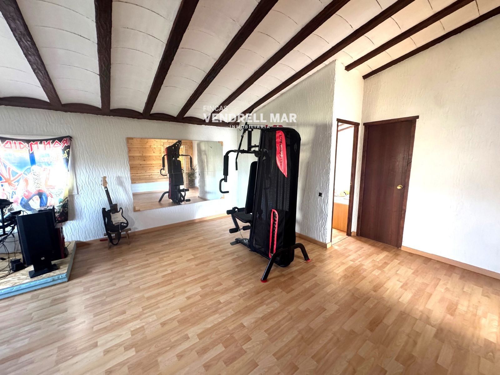 Completa esta planta una gran sala diáfana, actualmente destinada a gimnasio, junto con dos dormitorios dobles, uno de ellos tipo camarote.