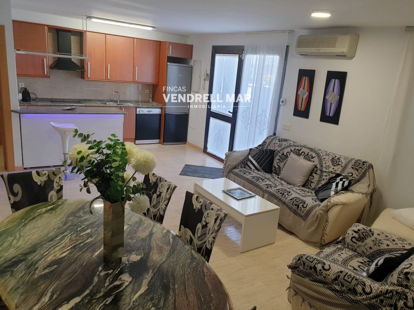 Al entrar, una encantadora terraza de 15 m² se convierte en el escenario perfecto para desayunos al sol, cenas de verano o momentos de relax. Desde aquí accedemos a un amplio salón-comedor, un espacio pensado para compartir, que conecta con una cocina independiente con salida a una terraza posterior privada, un rincón especial con ducha exterior, zona de lavado y trastero, ideal tras un día de playa.